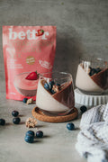 Pamatujete si na sladké, krémové potěšení z jahodového pudinku z dětství? Nyní si můžete vychutnat tuto nostalgickou chuť zdravějším, zcela přirozeným způsobem s Bett'r Pudding Mix – připraveno za minutu! Přirozeně bohatá, ovocná chuť a neodolatelné aroma.