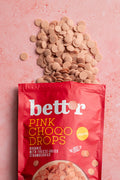 Bett'r Pink Choco Drops jsou dokonalým způsobem, jak přidat sladkost a barvu vašim oblíbeným dezertům nebo si je vychutnat jako jednoduchý pochoutka bez viny.