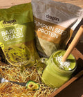 Dragon Superfoods Pumpkin Seed Protein se jemně extrahuje a pečlivě mele. Je to skvělý rostlinný zdroj snadno asimilovatelných bílkovin. Jemná oříšková chuť našeho produktu je lahodnou vzpruhou pro vaše každodenní smoothie, džus nebo salát. Stačí smíchat 2 lžíce. z našeho Pumpkin Seed Protein, ? banán, 2 vypeckované datle, 1 lžička zeleného prášku a voda.