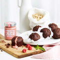 pražené kešu ořechy* (88 %), datlový prášek*, sušené maliny* (4 %).