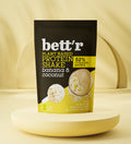 Jednoduše smíchejte 2 polévkové lžíce (30 g) Bett'r Protein Shake Banana & Kokosová voda, jakékoli rostlinné mléko (jako je mandlové, ovesné nebo kokosové mléko) nebo běžné mléko pro krémový, lahodný proteinový koktejl.